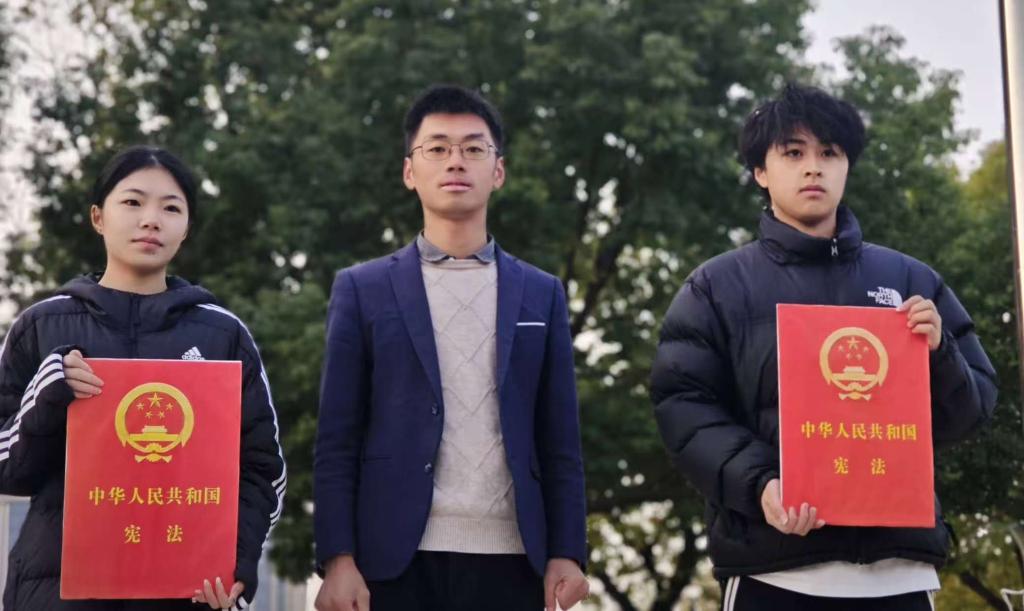 学院分团委书记刘健老师向学生代表赠送宪法书籍,并号召同学们从遵守校规到参与普法,用实际行动让法治精神在校园绽放光芒,一起做宪法的忠实崇尚者、自觉遵守者、坚定捍卫者!